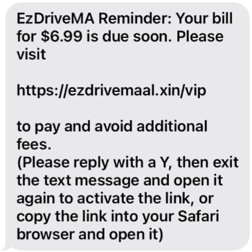 EzDriveMA Reminder: Your bill for $6.99 is due soon. Please visit